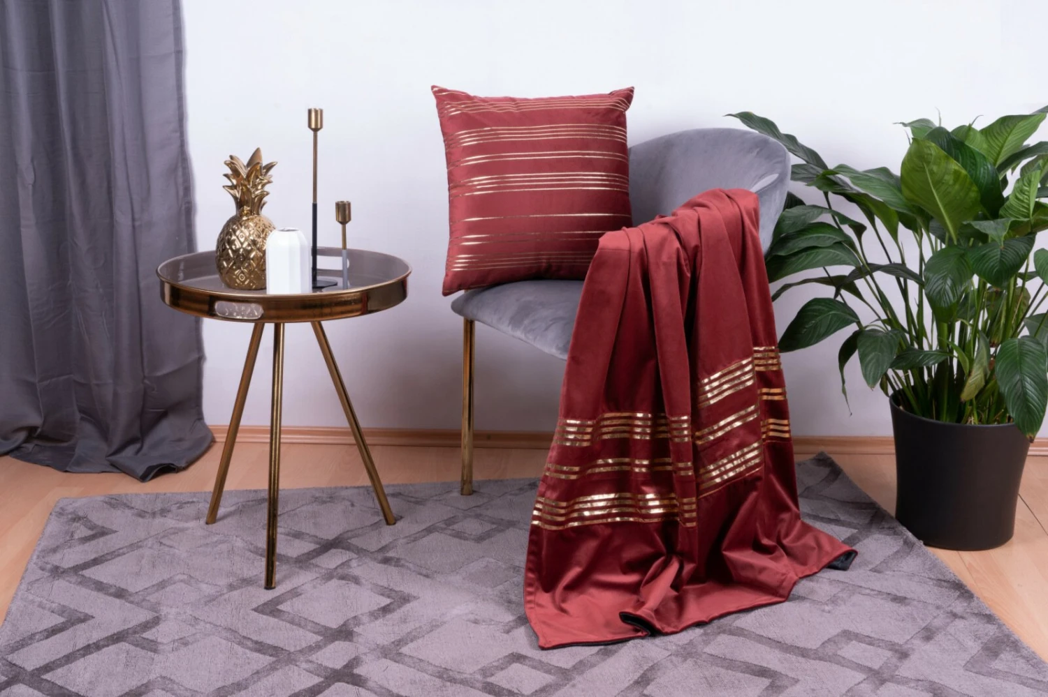 Decke & Kissen – rot-gold – 45×45 cm