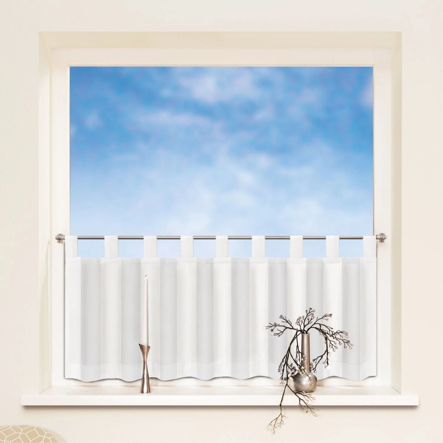 Die schlichte Scheibengardine mit Ihren Längsstreifen lässt Ihr Zuhause wohnlicher wirken und schützt Sie vor neugierigen Blicken. Das Polyester macht diese Gardine robust und pflegeleicht.