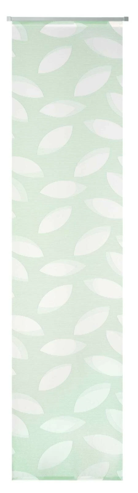 Schiebevorhang mit modischem Look. Hergestellt in einem aufwendigen Webverfahren gibt dem Vorhang eine Optik herabfallender Blätter. Geben Sie ihren Fenstern das gewisse Extra, indem Sie den Schiebevorhang an die mitgelieferte Schiene kletten.
