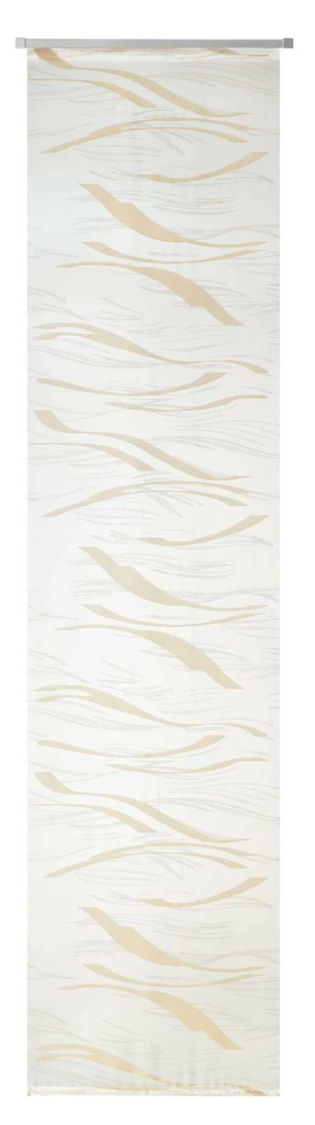 Bringen Sie mit dem attraktiven Schiebevorhang Stil und Persönlichkeit in Ihre vier Wände. Der Wollweiß-Beige Stoff mit dynamischen Wellenlook ist ein echter Hingucker.
