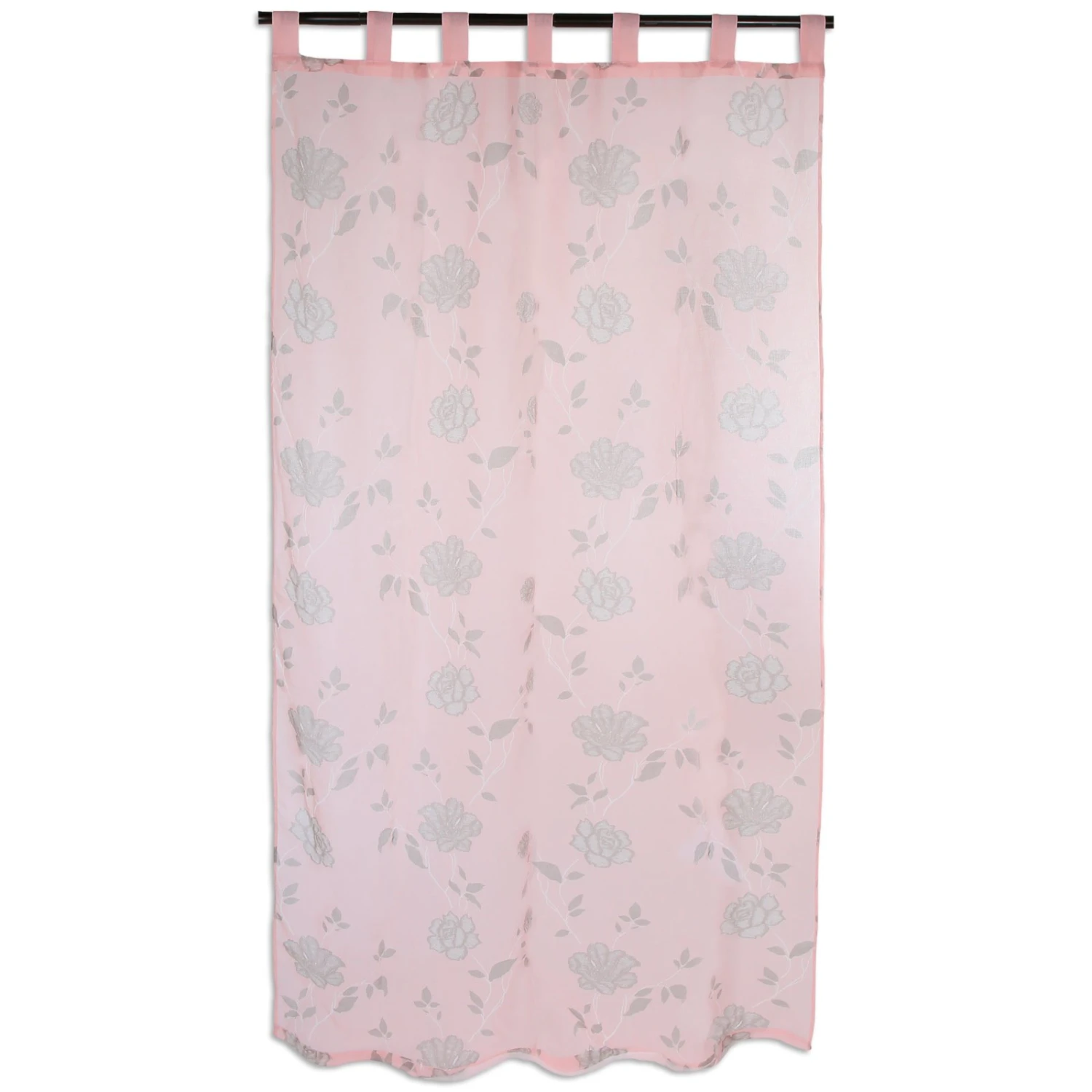 Der transparente Schlaufenschal ist in einem zarten Altrosa gehalten mit Blumen in Ivory. Mit den großen Schlaufen ist er leicht auf eine Gardinenstange zu bringen. Er macht im Wohnzimmer und auch im Kinderzimmer eine gute Figur. Er lässt das Licht durch und hält neugierige Blicke tagsüber draußen.