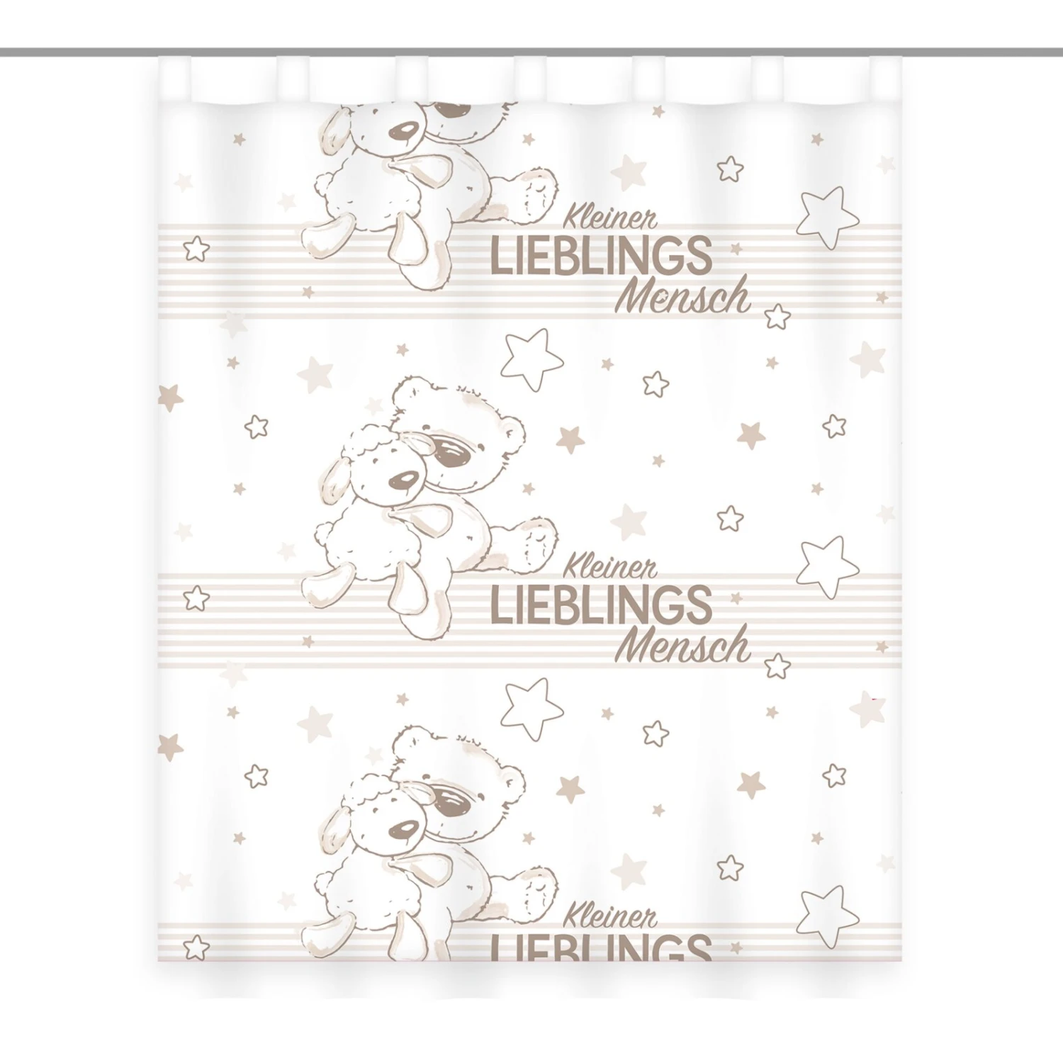Schlaufenschal KLEINER LIEBLINGSMENSCH – Weiß-Beige – 140×160 cm – Transparente Gardine