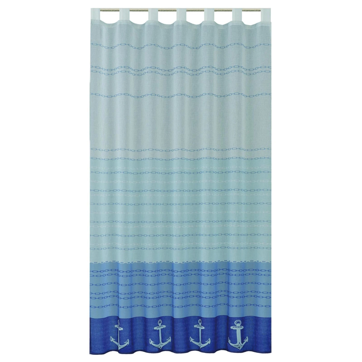 Im maritimen Look und mit einer Breite von etwa 145 Zentimetern präsentiert sich dieser schöne Schlaufenschal. Der blaue Stoff ist verdunkelnd und wurde aus robustem Polyester gefertigt. Dieser lässt sich bis zu 40 Grad waschen und im Schonprogramm des Trockners trocknen.