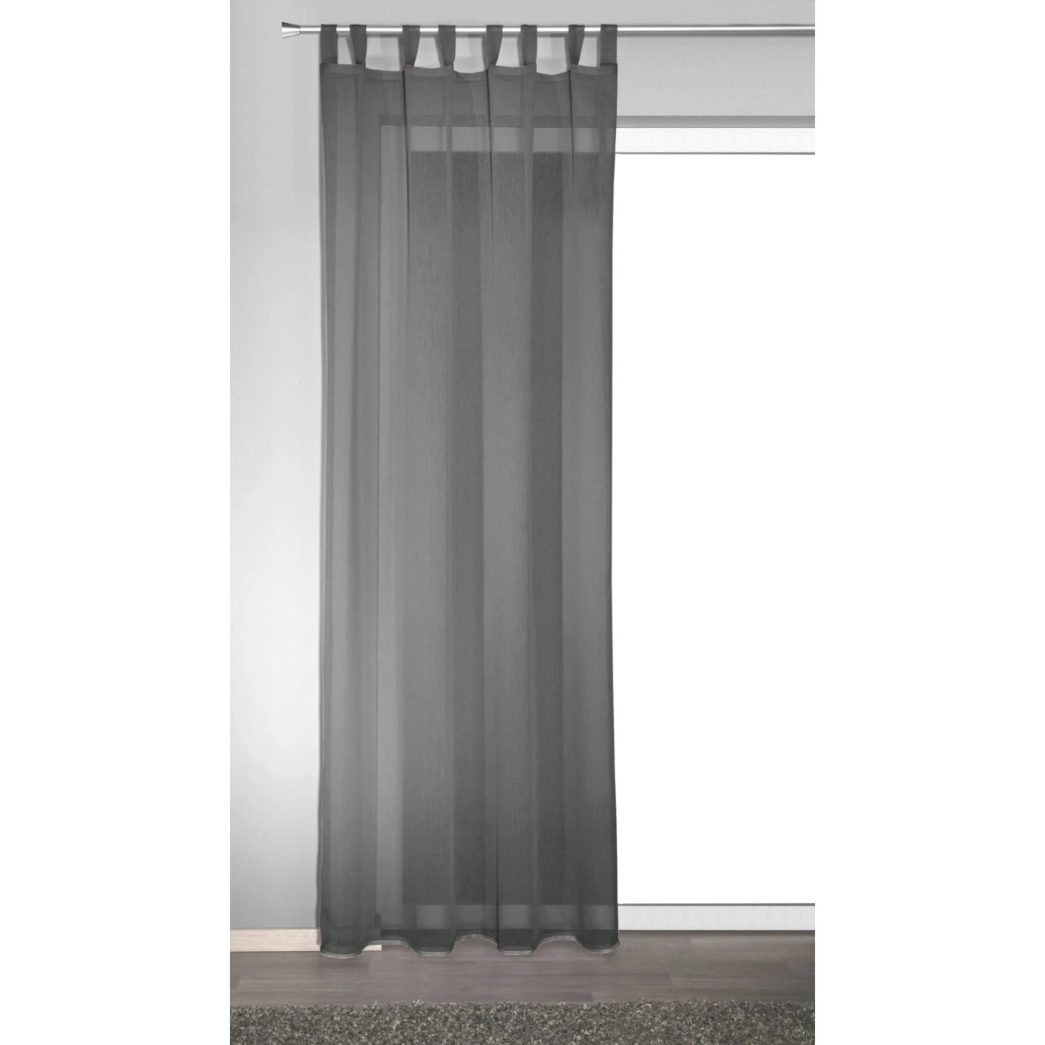 Der unifarbene Schlaufenschal in der Farbe Anthrazit ist zu 100% aus Polyester, 135 x 245 cm groß und transparent. Er setzt einen tollen Akzent an Ihren Fenstern und sorgt für mehr Privatsphäre.