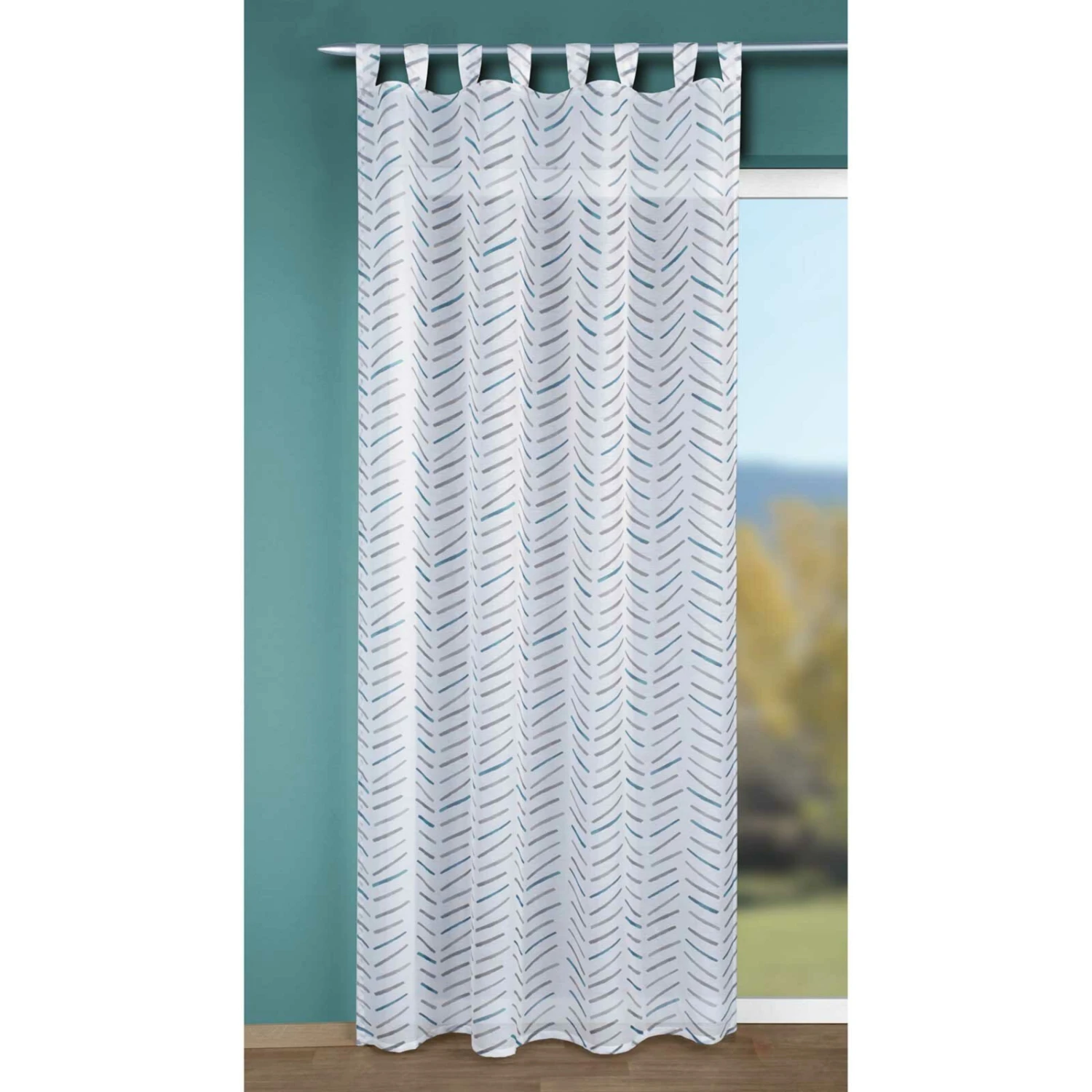Schlaufenschal weiß-grau-petrol 140×245 cm – Transparente Gardine für stilvolles Wohnen