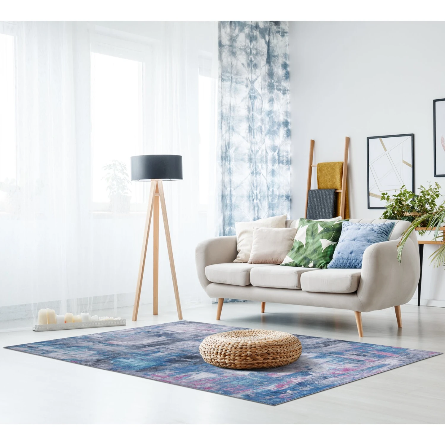 Ein Teppich wie ein modernes Kunstwerk – mit dem schönen grau-blauen Farbverlauf bringen Sie eine besondere Atmosphäre in Ihre vier Wände. Dazu kommt, dass der Polyester-Teppich schalldämmend wirkt und auch gut zusammen mit einer Fußbodenheizung eingesetzt werden kann.