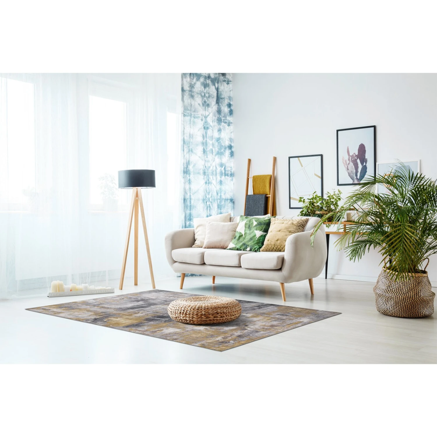 Ein Teppich wie ein modernes Kunstwerk – mit dem grau-gelben Farbverlauf bringen Sie besonderes Flair in Ihre vier Wände. Dazu kommt, dass der Polyester-Teppich schalldämmend wirkt und auch gut bei einer Fußbodenheizung eingesetzt werden kann.