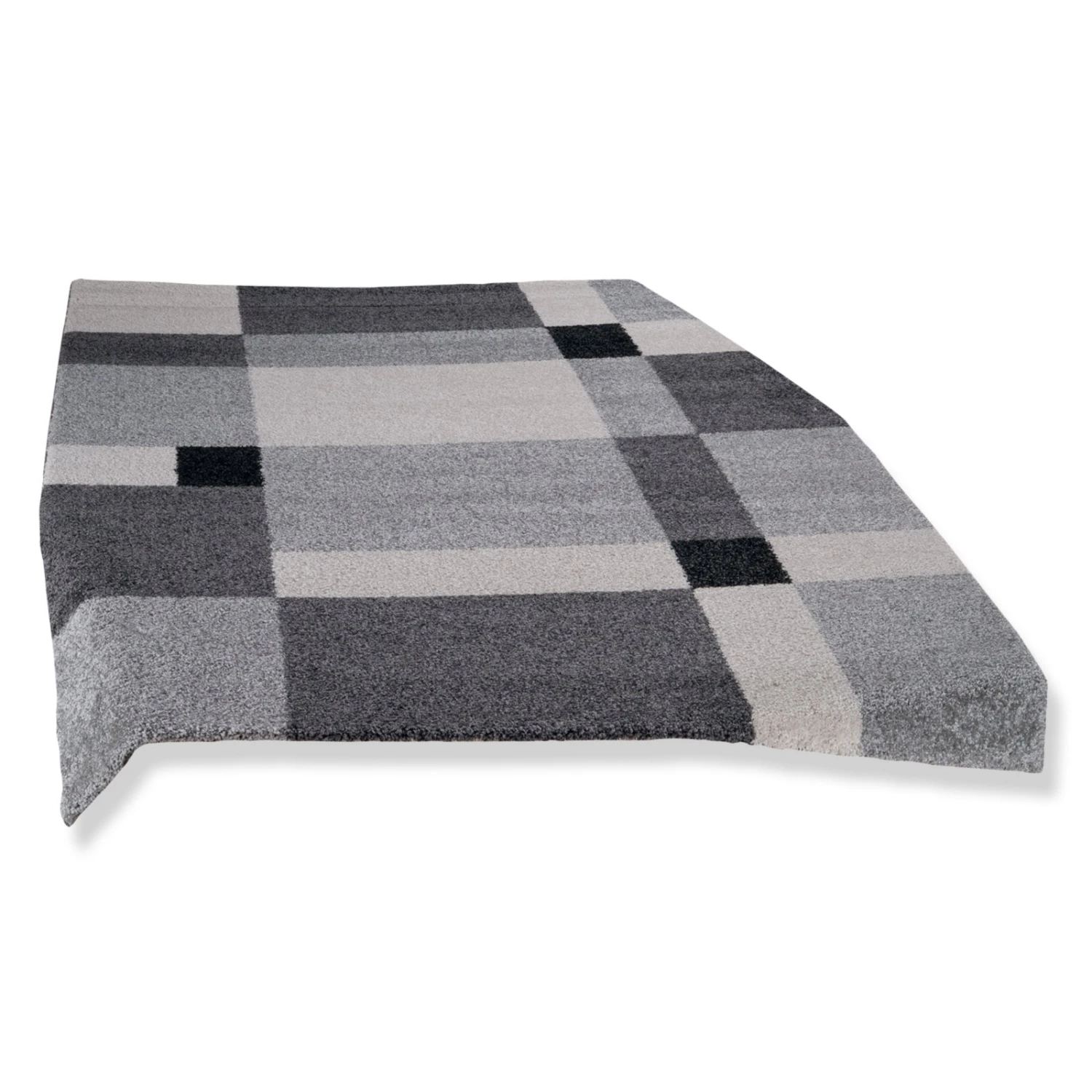 Der grau-karierte Teppich ist ein moderner und besonders pflegeleichter Teppich, er kann in Kombination mit Fußbodenheizungen verwendet werden und ist durch seine Strapazierfähigkeit für alle Wohnräume geeignet.