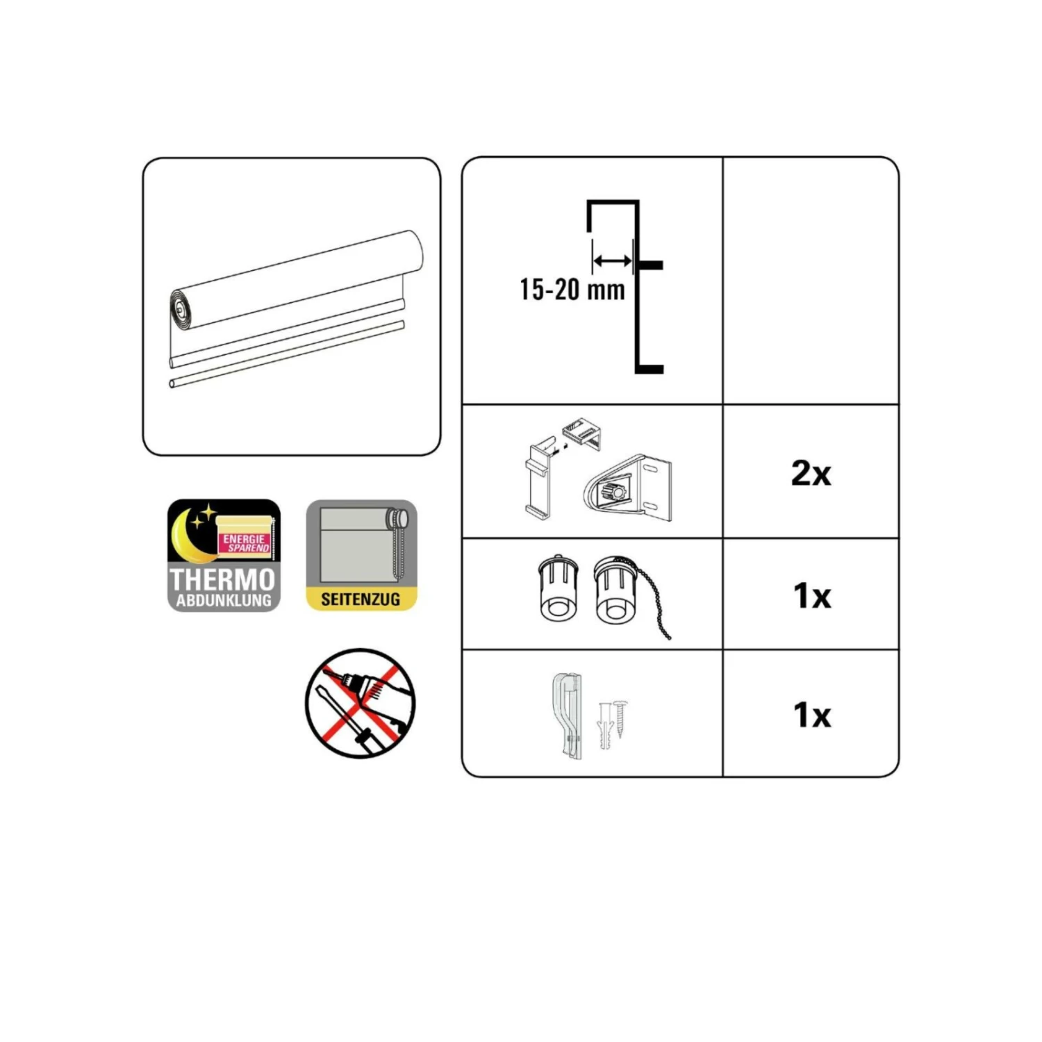 Weißes Thermo-Klemmrollo, das zu jedem Einrichtungsstil und in jedes Zimmer passt. Ob zum Klemmen oder Schrauben, die Montage ist stets einfach. Durch die alubeschichtete Rückseite wirkt das Rollo abdunkeld und lichtundurchlässig.