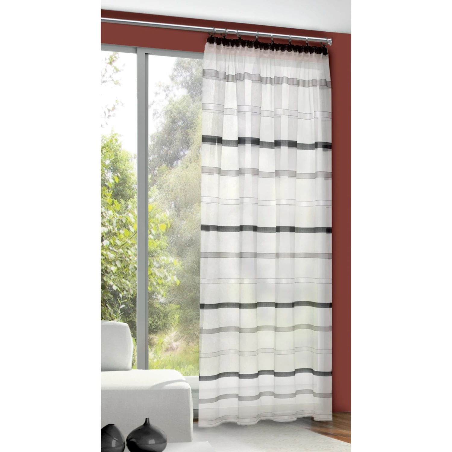 Für das gewisse Etwas in Ihren Räumlichkeiten sorgt dieser bezaubernde Vorhang mit tollem Streifen-Muster! Das Polyester macht diesen Vorhang robust und pflegeleicht.