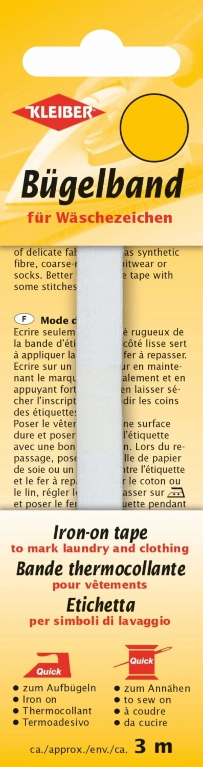 Mit diesenpraktischen Bügelbändern gehen keine Kleidungsstücke mehr im Kindergarten, aufKlassenfahrt oder bei der Sommerfreizeit verloren. Sie erhalten insgesamt ca. 3m Band, welches für ca. 50 Wäsche Zeichen ausreicht. Die Kennzeichnungenlassen sich schnell erstellen und können einfach in Pullover, T-Shirts und Hosen eingebügelt oder eingenäht werden.
